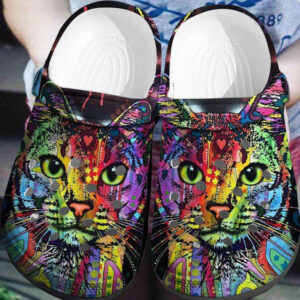 Merchidea Cute Hippie Colorful Cat Crocband Clog Shoes