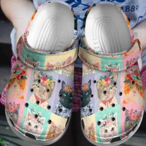 Merchidea Cute Teams Cats All Over Colorful Fashion Gift For Lover Rubber clog Shoes Comfy Footwear