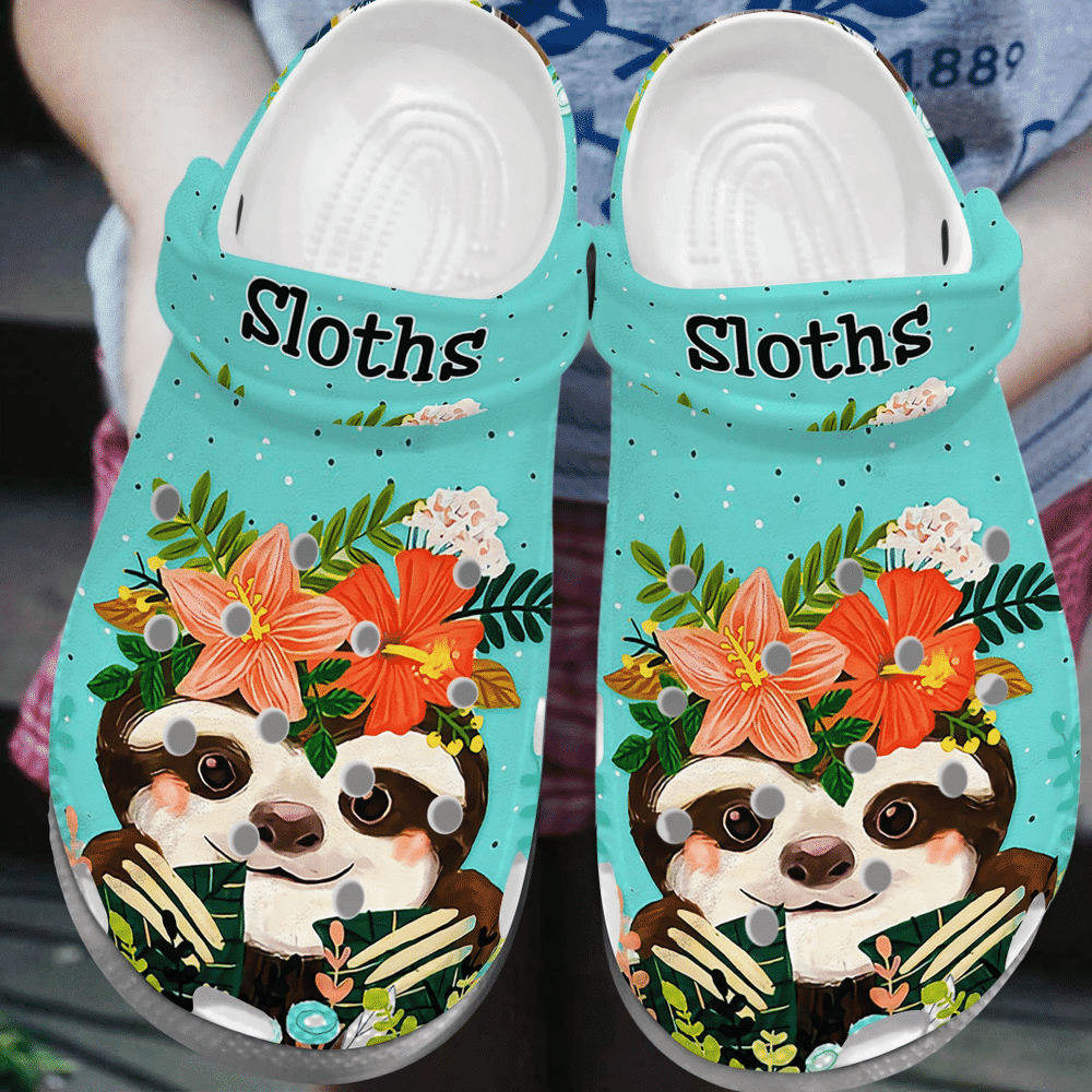 Merchidea Baby Sloth With Flower Crown Baby Animal Gift For Lover Rubber clog Shoes Comfy Footwear