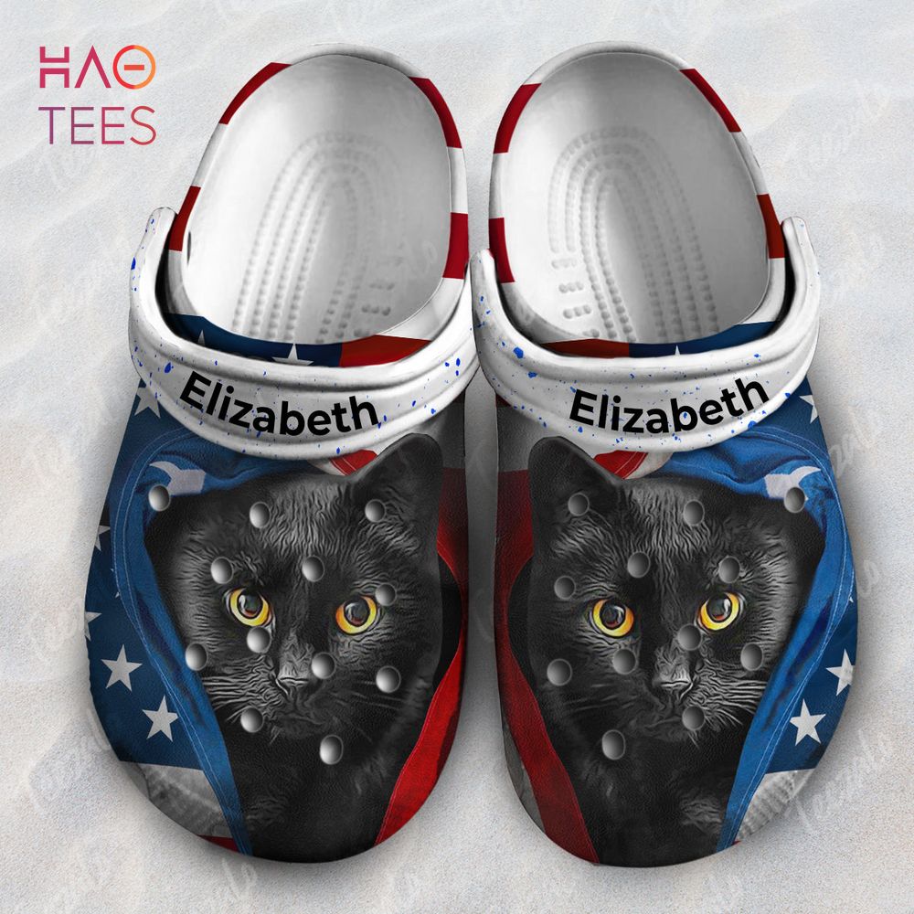 Merchidea Cat Opened American Flag Animal Crocs Crocband Clogs Shoes Comfortable For Men Women and Kids