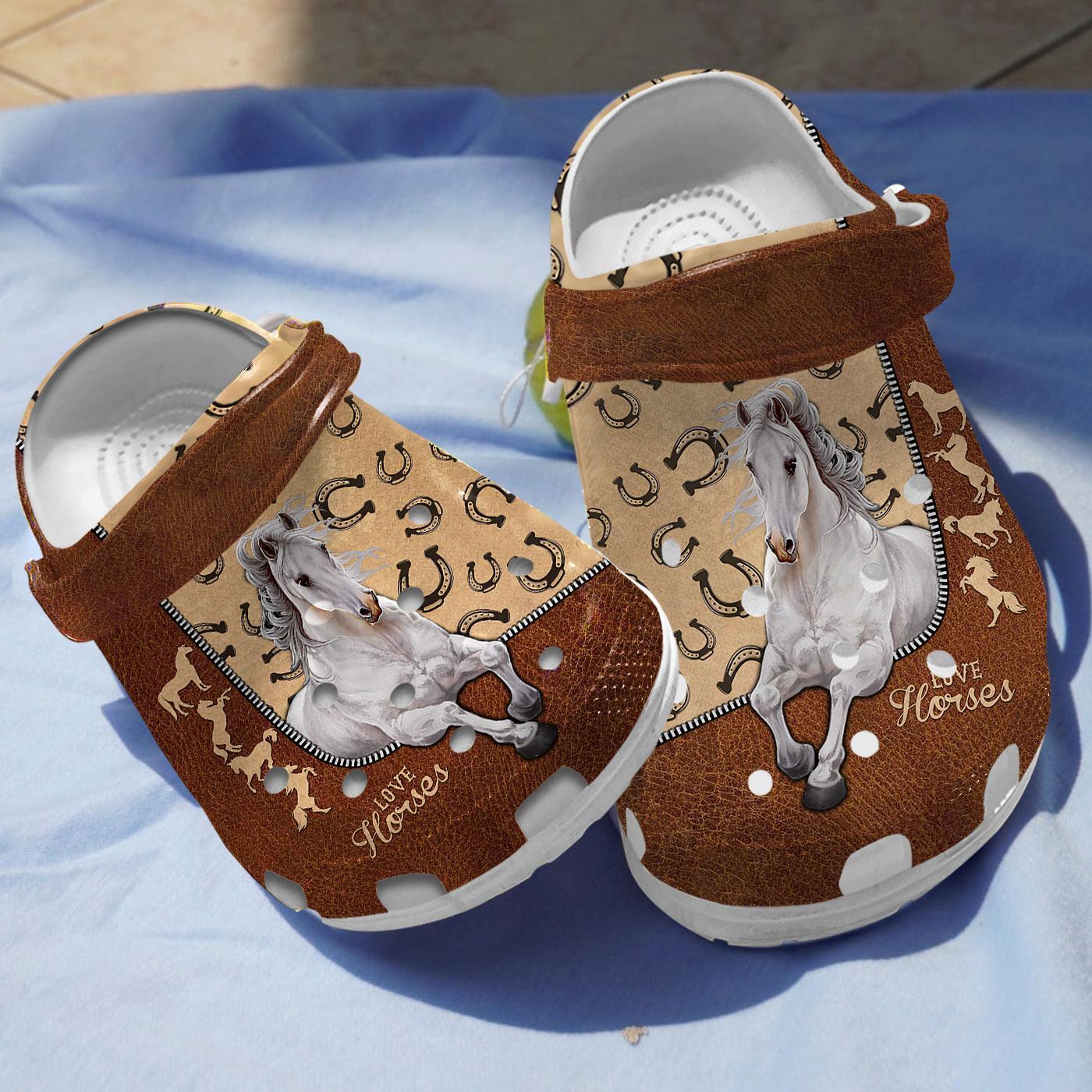Merchidea Love White Horse Crocs Crocband Clogs Shoes Comfortable For Men Women and Kids