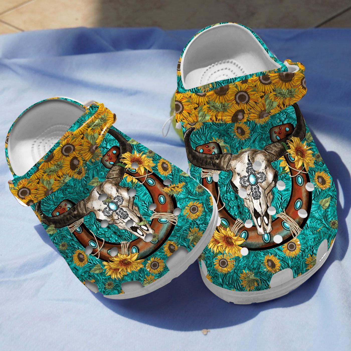 Merchidea Western Bull Skull Horseshoe Crocs Crocband Clogs Shoes Comfortable For Men Women and Kids