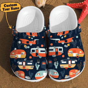 Merchidea Camping Trailer Pattern Summer Happy Camper Best Gifts For Lovers Campers Cool clog Shoes Camping