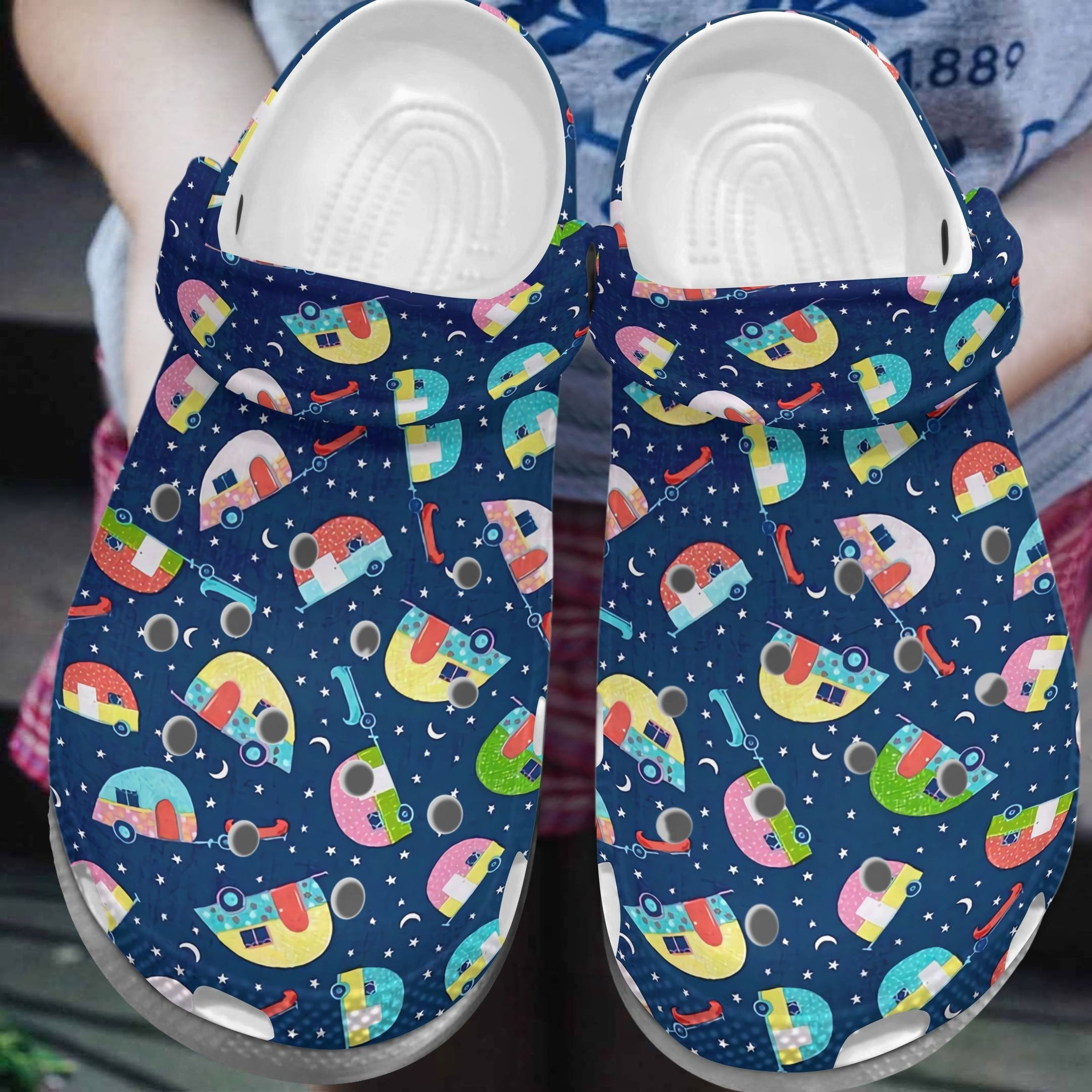 Merchidea Camping Trailer Pattern Summer Happy Camper Best Gifts For Lovers Campers Cool clog Shoes