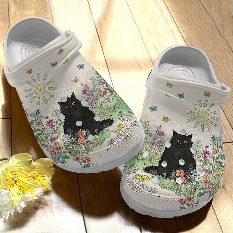 Merchidea Blooming Black Cat Clogs Shoes Birthday Christmas Gift For Women