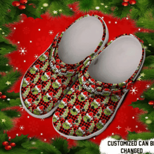 Merchidea Custom Name Black Red Tartan The Grinch Christmas Gift Clogs Shoes