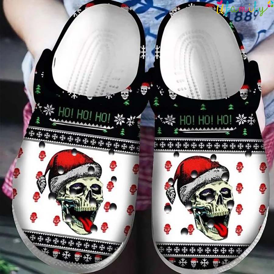 Merchidea Hohoho Skull Ugly Christmas Crocs Crocband Clogs Shoes Comfortable For Men Women and Kids