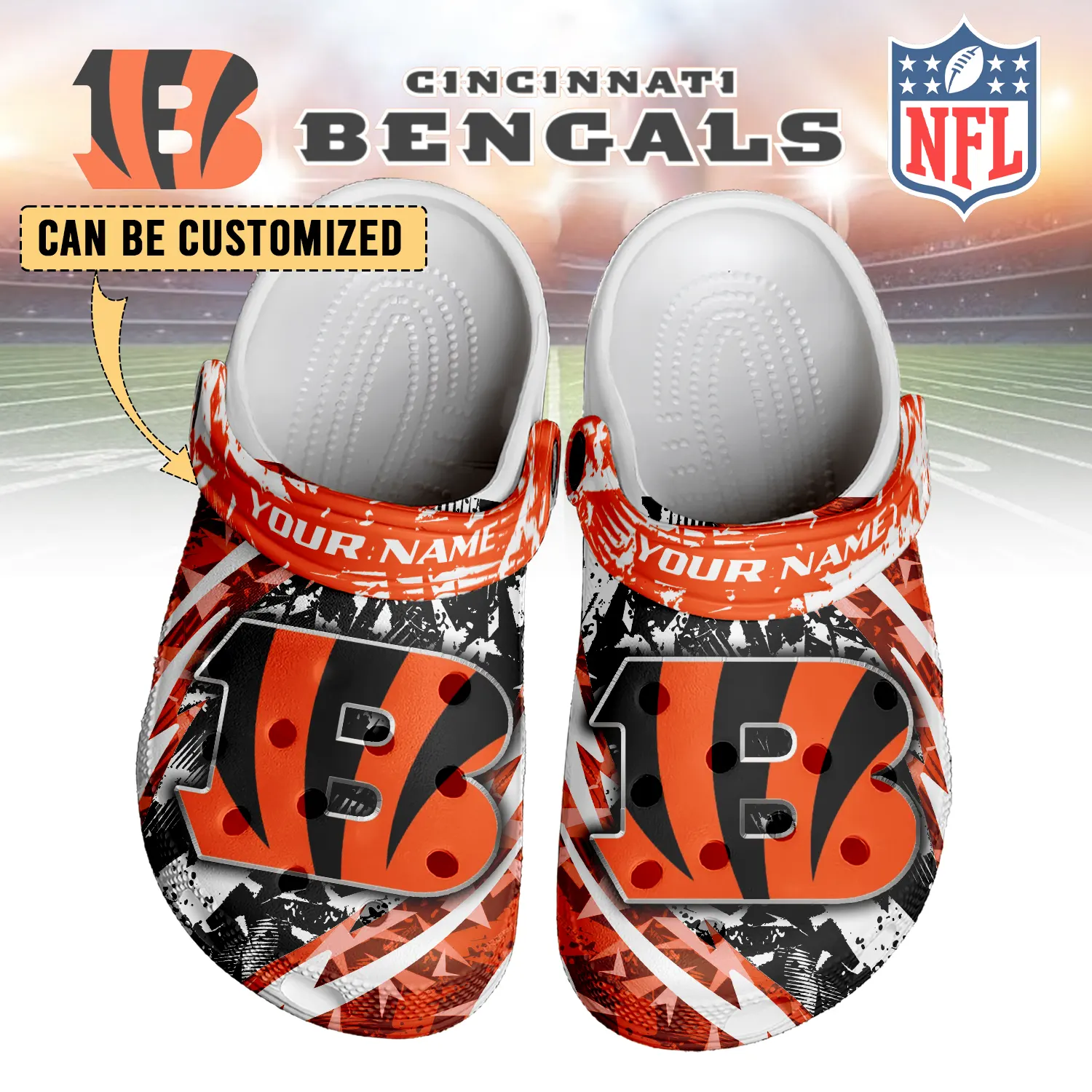 Merchidea Cincinnati Bengals NFL Crocs Crocband Clogs Shoes Comfortable For Men Women and Kids