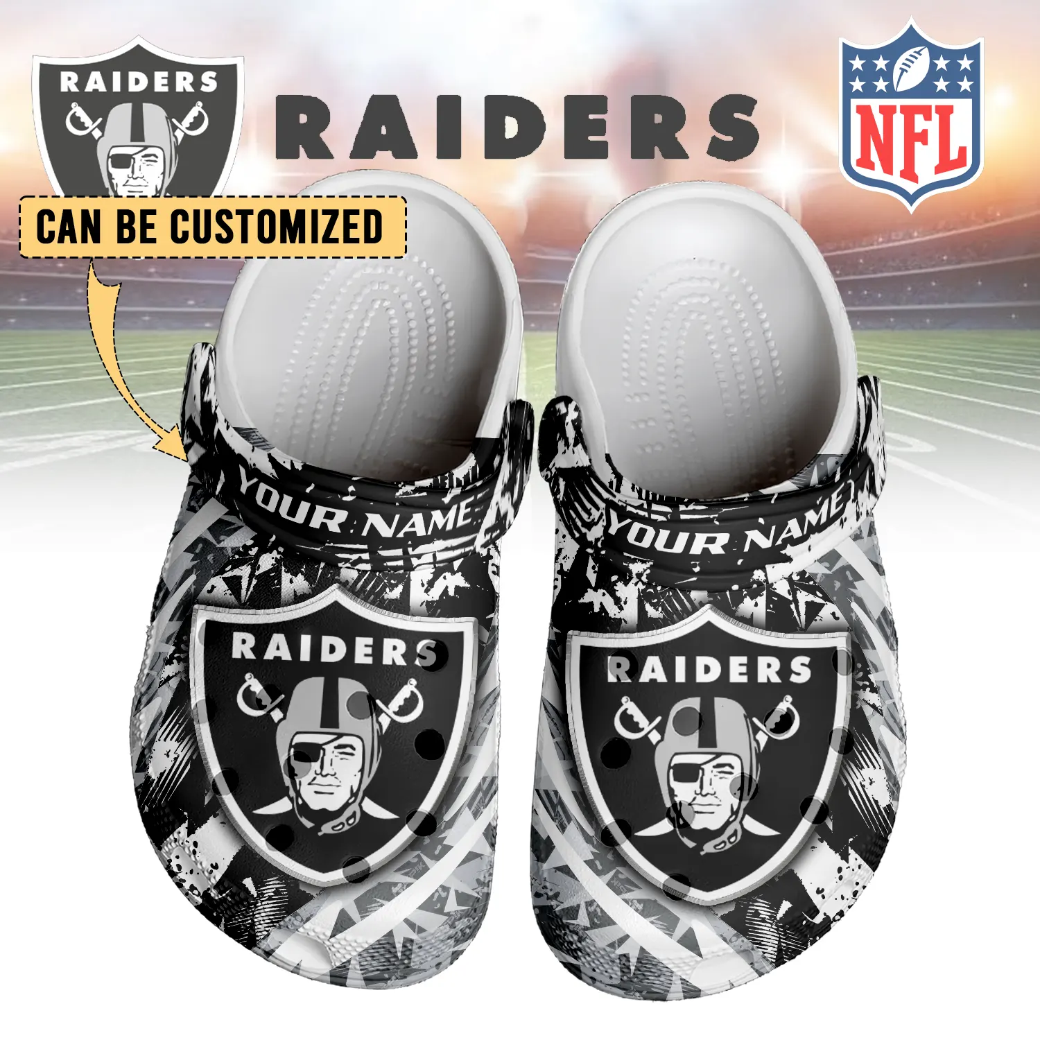 Merchidea Las Vegas Raiders NFL Crocs Crocband Clogs Shoes Comfortable For Men Women and Kids