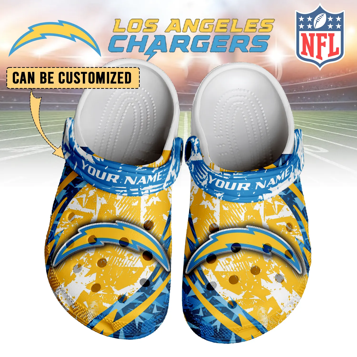 Merchidea Los Angeles Chargers NFL Crocs Crocband Clogs Shoes Comfortable For Men Women and Kids