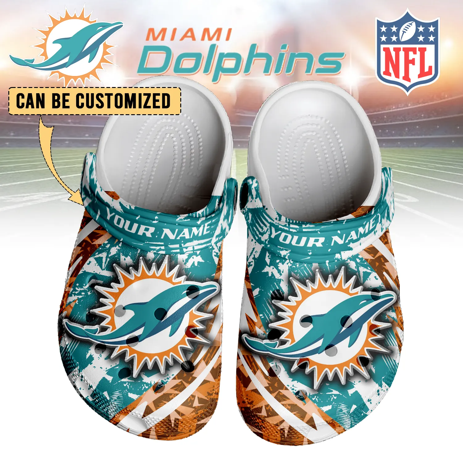 Merchidea Miami Dolphins NFL Crocs Crocband Clogs Shoes Comfortable For Men Women and Kids