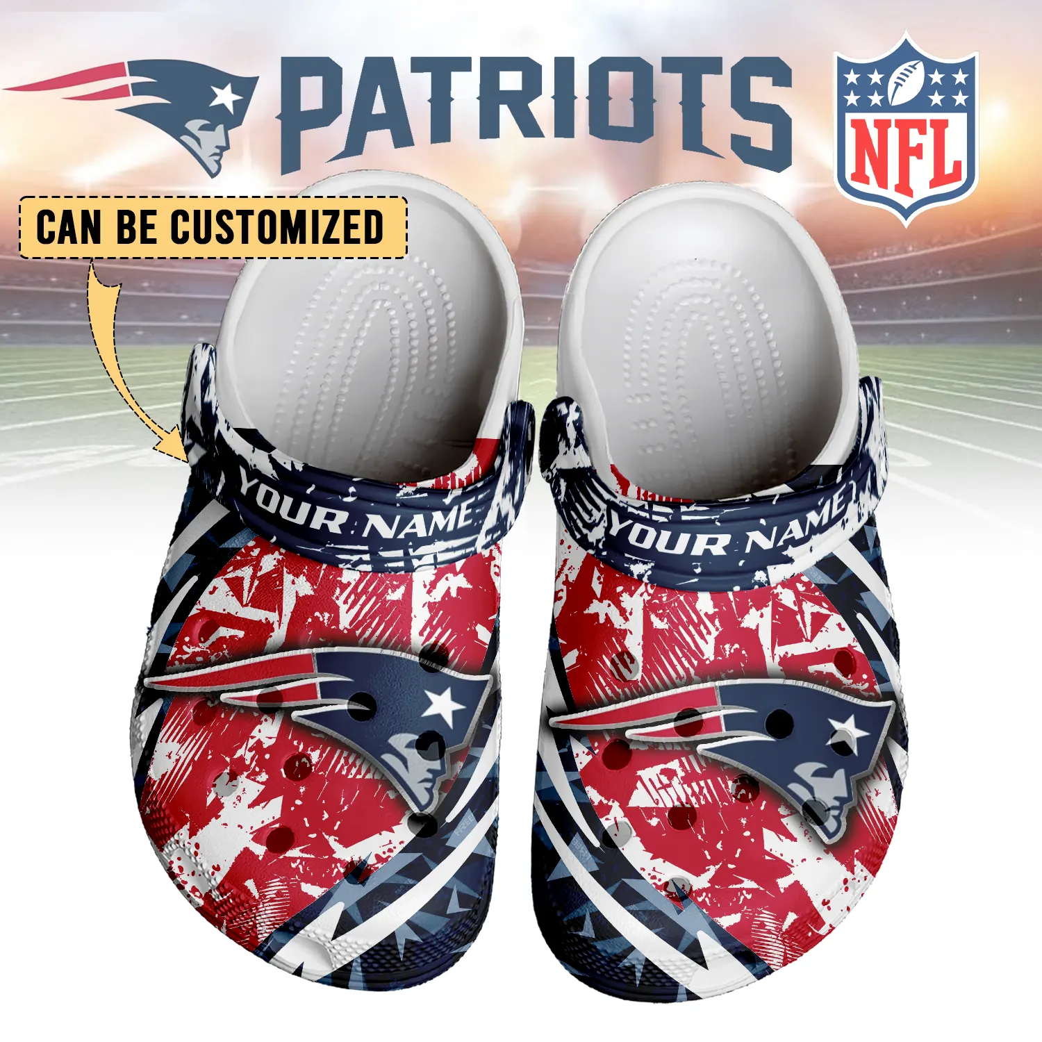 Merchidea New England Patriots NFL Crocs Crocband Clogs Shoes Comfortable For Men Women and Kids