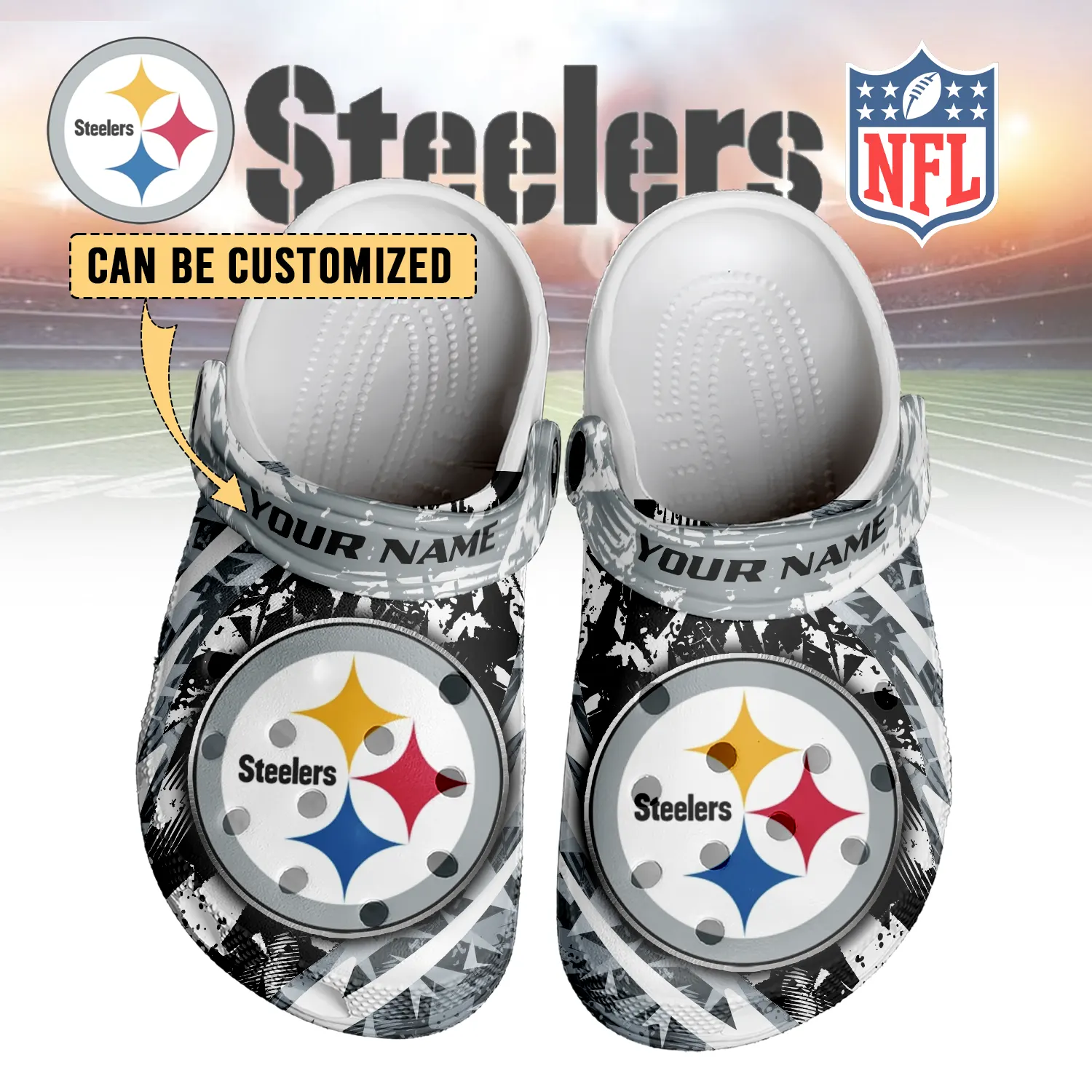 Merchidea Pittsburgh Steelers NFL Crocs Crocband Clogs Shoes Comfortable For Men Women and Kids