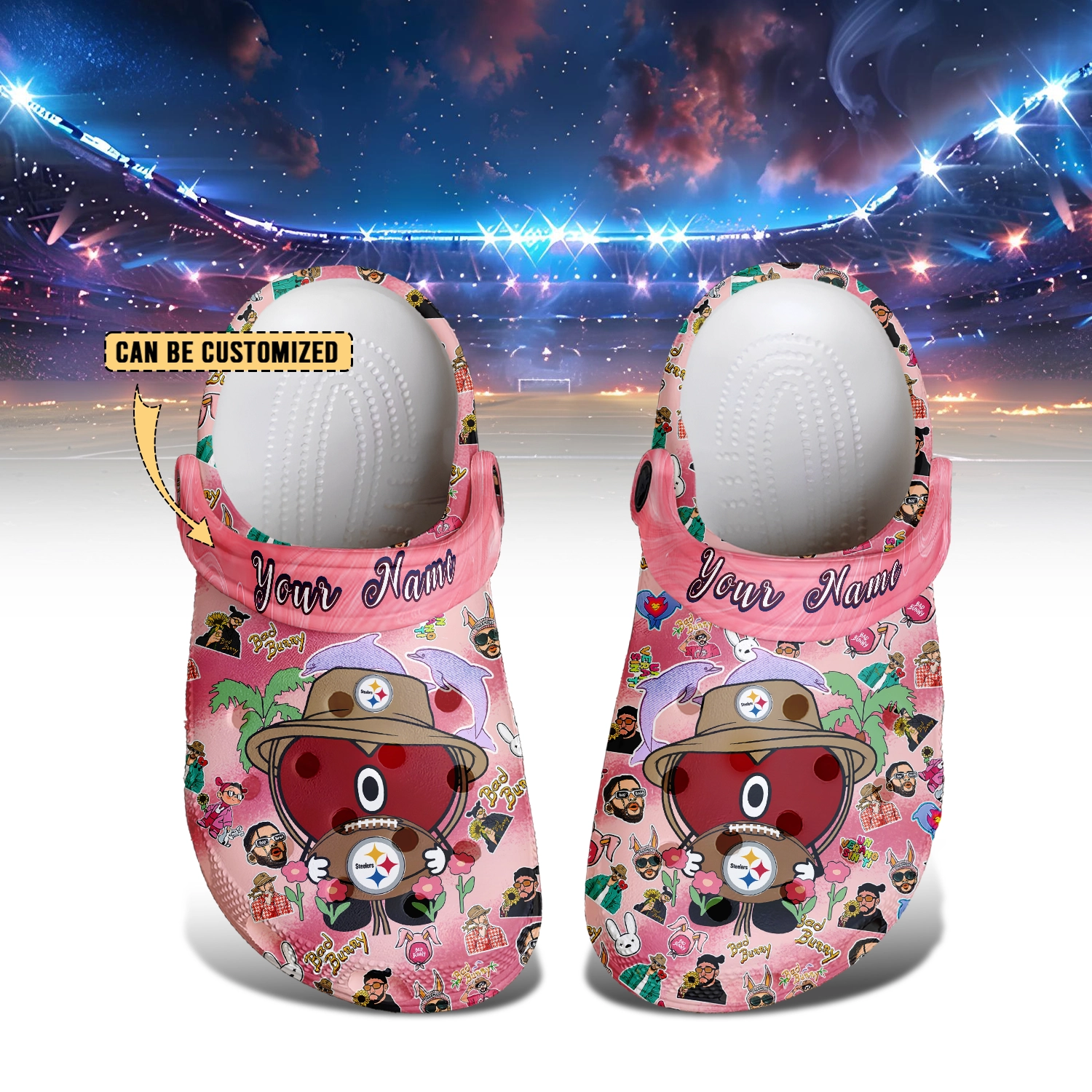 Merchidea Pittsburgh Steelers x Bad Bunny Crocs Crocband Clogs Shoes Comfortable For Men Women and Kids