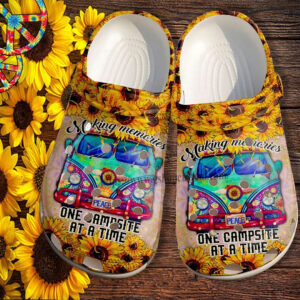 Merchidea Camping Bus Peace Sunflower Croc Shoes Gift Mother Day- Hippie Trippy Bus Camp Shoes Croc Clogs