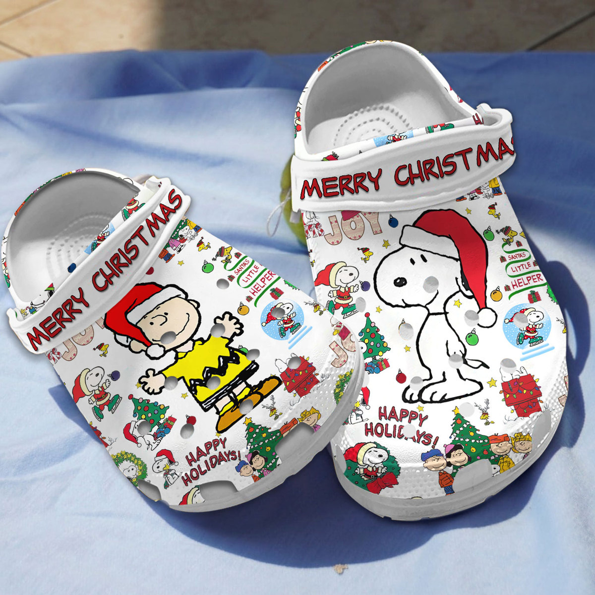 Merchidea Snoopy Cartoon Christmas Crocs Crocband Clogs Shoes Comfortable For Men Women and Kids