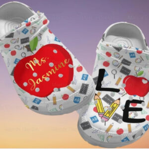 Merchidea Proud To Be A Teacher Learning Tools Pattern Custom Name Crocband Clog Shoes For Men Women