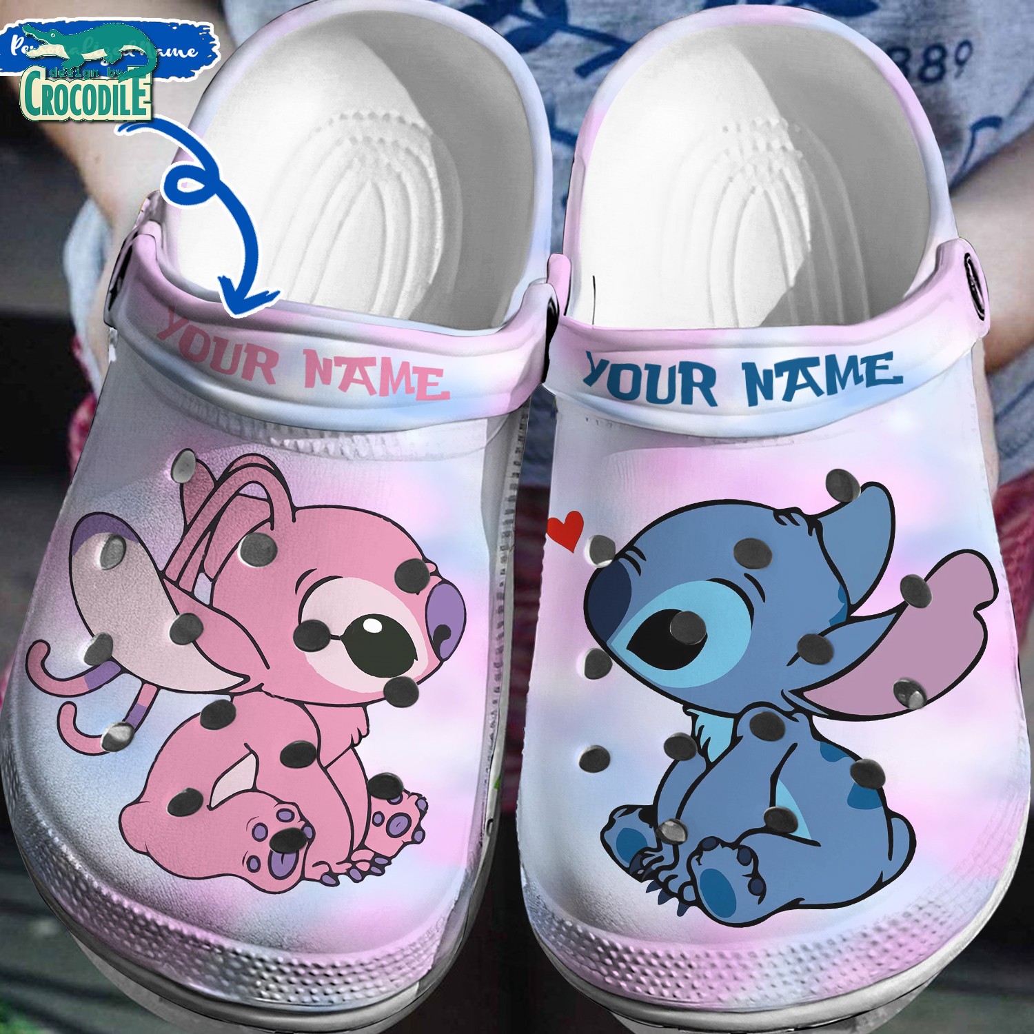 Merchidea Stitch And Angel Cartoon Crocs Crocband Clogs Shoes Comfortable For Men Women and Kids