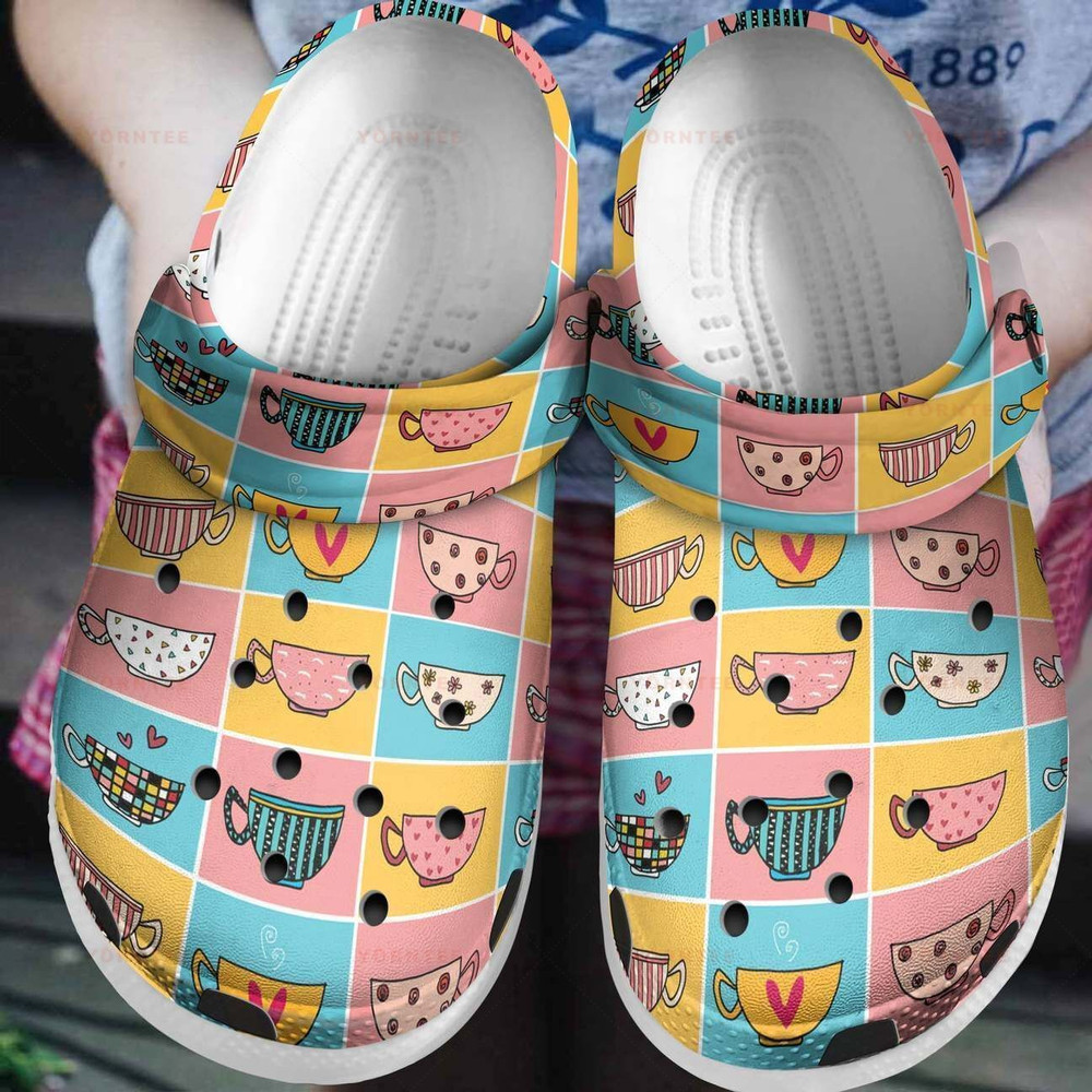 Merchidea Colorful Coffee Cups Gift For Lover Rubber clog Shoes Comfy Footwear