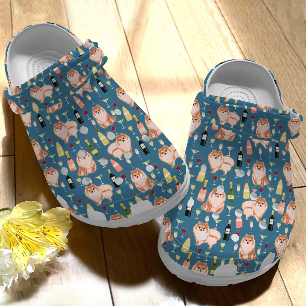 Merchidea Pomeranian And Wine Gift For Lover Rubber clog Shoes Comfy Footwear