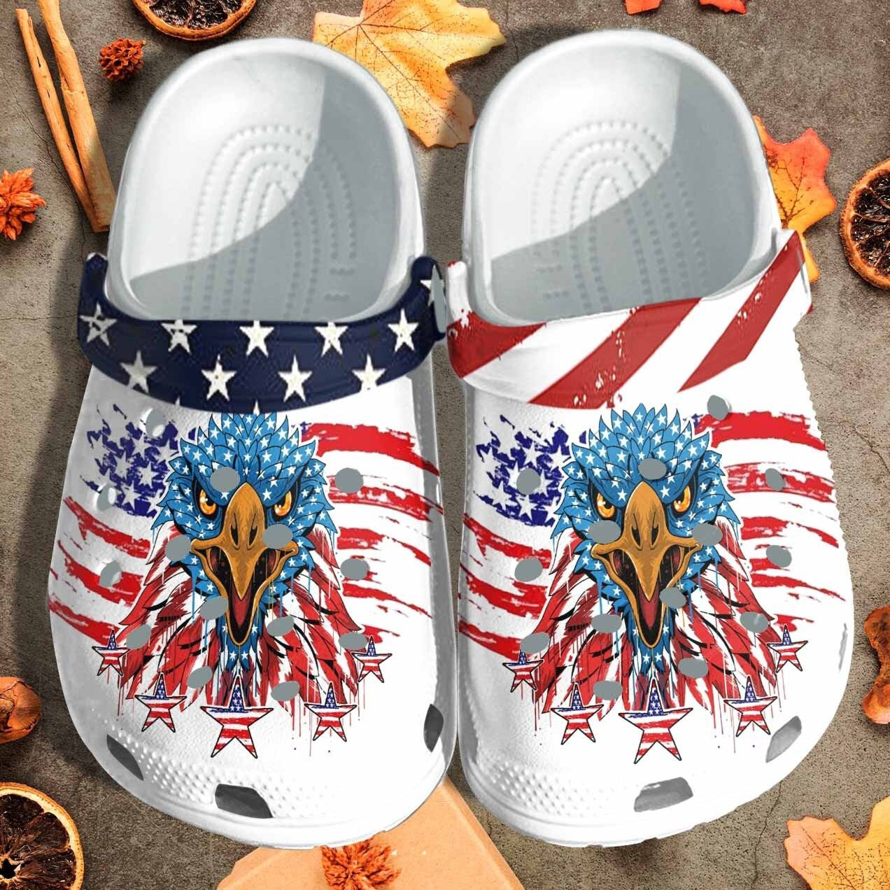 Merchidea American Eagle Skin Custom Shoes Clogs – Usa Flag 4Th July Outdoor Shoes Clogs Gift