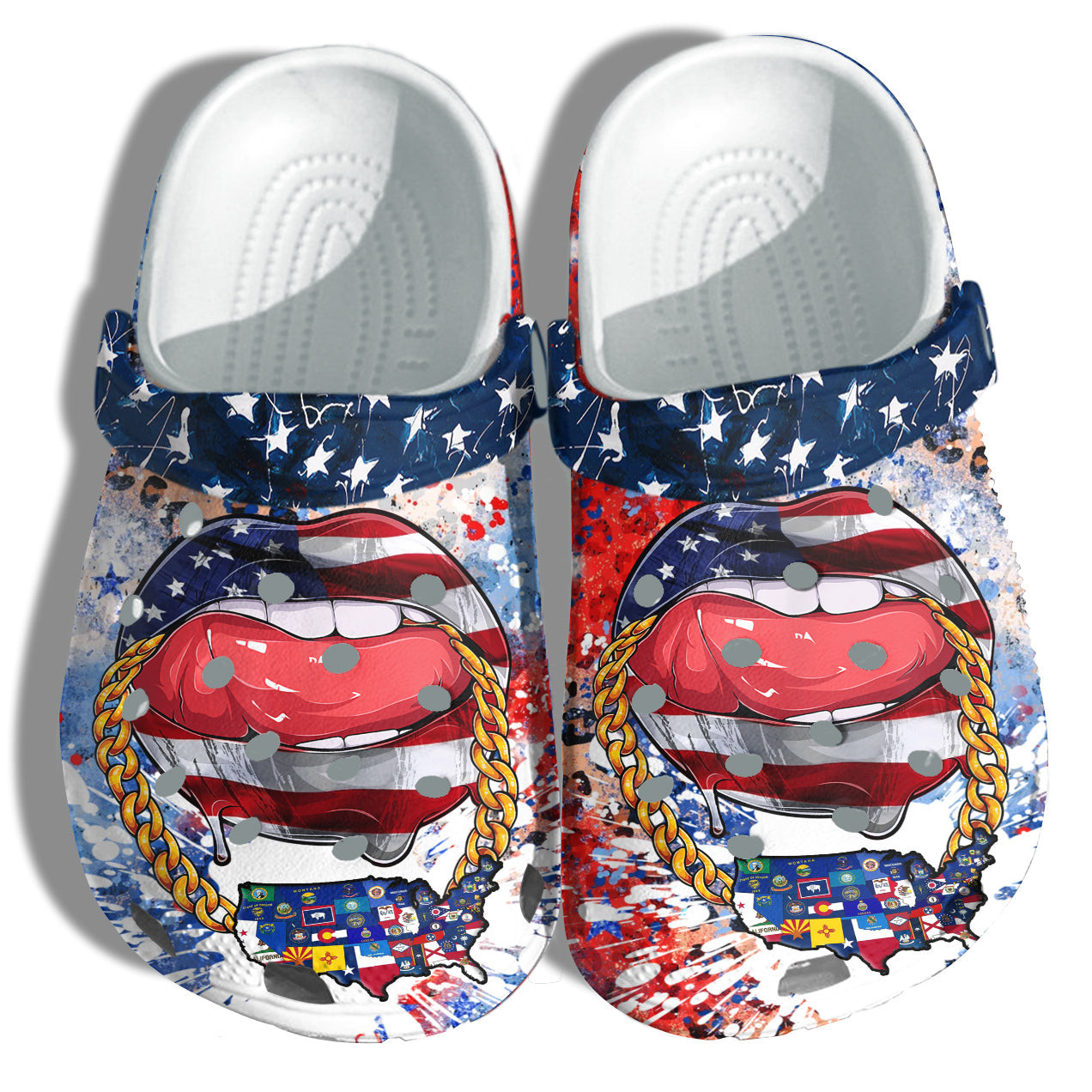 Merchidea Sexy Lips Tongue Chains States Signs 4Th Of July Shoes Gift Women – Usa All States Logo America Flag Shoes Birthday Gift