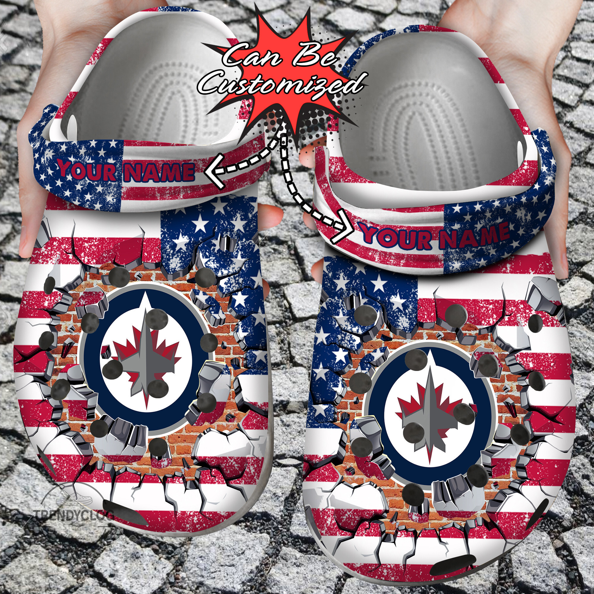 Merchidea Hockey Personalized WJets American Flag Breaking Wall Clog Shoes