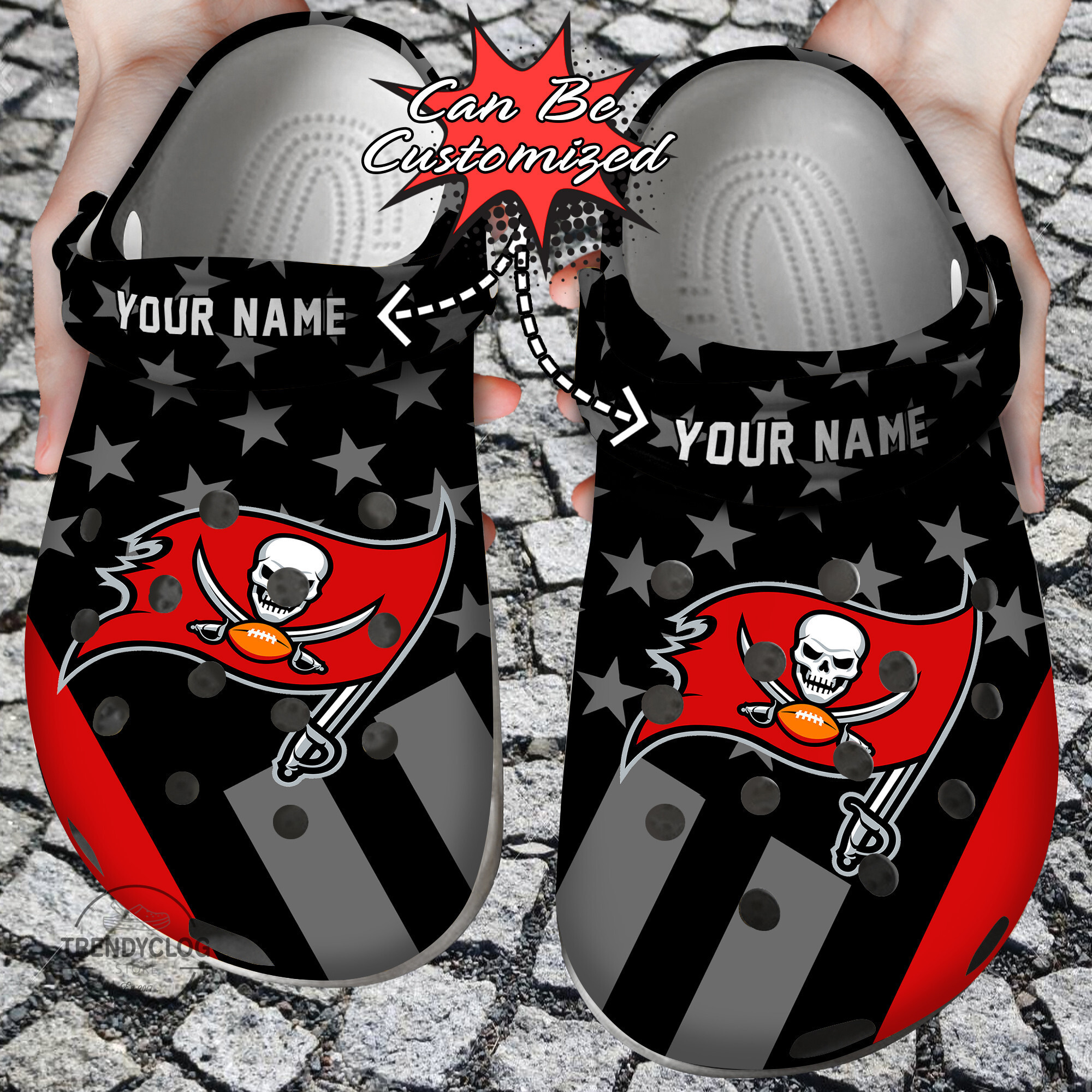 Merchidea Football Personalized TB Buccaneers Star Flag Clog Shoes