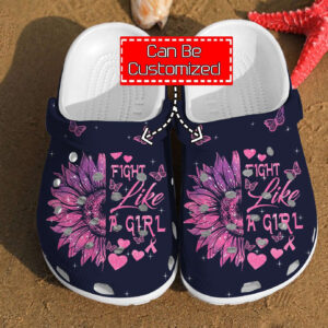 Merchidea Breast Cancer Awareness Fight Like A Girl Sunflower Crocband Clog Shoes