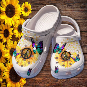Merchidea Butterfly Sunflower Peace Croc Shoes Gift Grandma- Sunflower Hippie Peace Shoes Croc Clogs Customize Gift