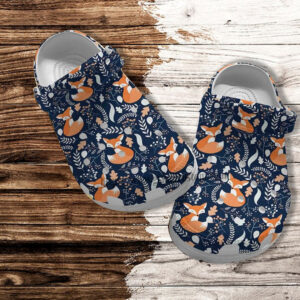 Merchidea Fox Boho Floral Cute Pattern Navy Croc Shoes Gift Grandaughter- Fox Girl Lover Shoes Croc Clogs Customize Gift Mother Day