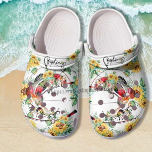 Merchidea Mother Day Shoes Fishing Flower Croc Shoes Gift Women- Fishing Lover Shoes Croc Clogs For Grandma Aunt