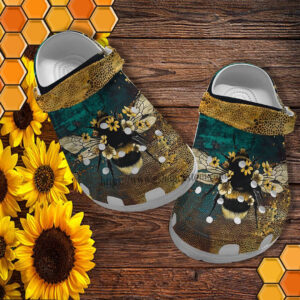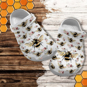 Merchidea Bee Pattern Floral Croc Shoes Gift Bestie- Bee Kind Hippie Shoes Croc Clogs For Aunt