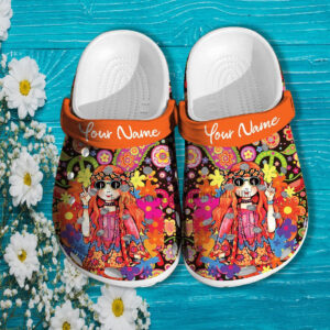 Merchidea Hippie Girl Peace Orange Shoes Birthday Gift Daughter Niece- Hippie Flower Peace Girl Shoes Croc Clogs Customize