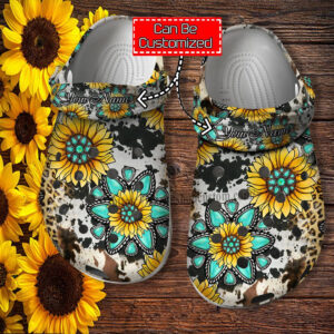 Merchidea Hippie Sunflower Leopard Cow Skin Shoes Gift Women Daughter- Sunflower God Bless Boho Shoes Croc Clogs Customize