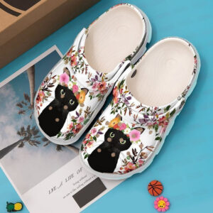 Merchidea Black Cat Floral Classic Clogs Shoes
