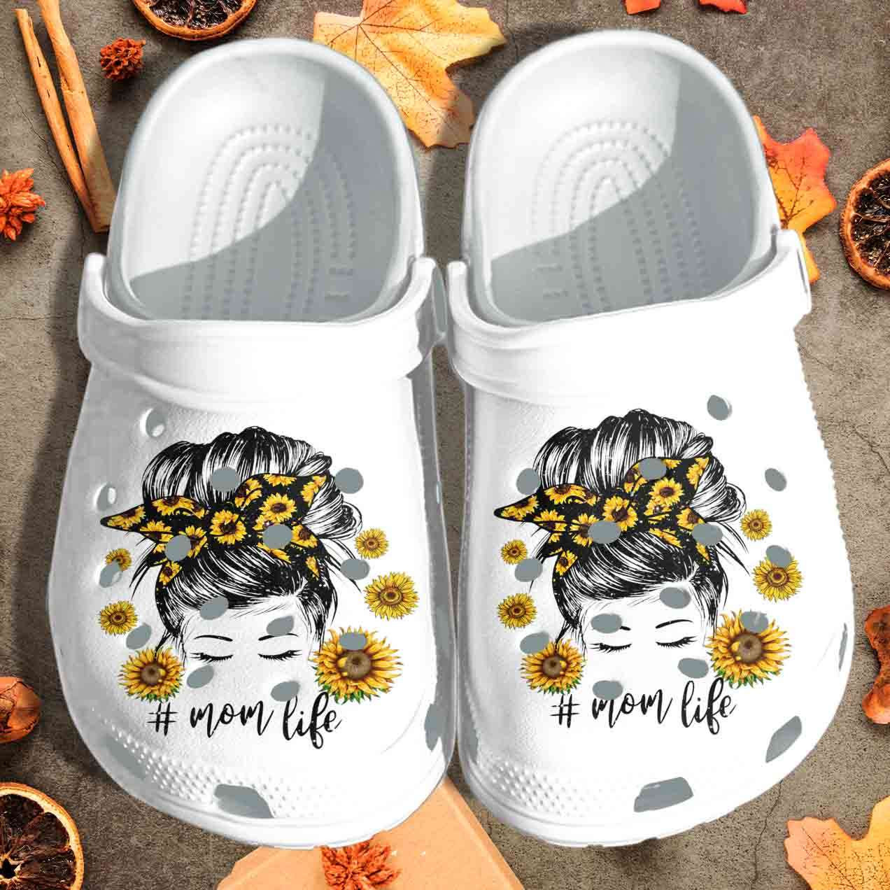 Merchidea Mom Life Sunflower Woman Messy Bun Mothers Day Crocband Clog Shoes