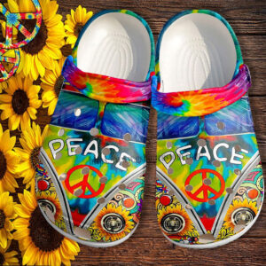 Merchidea Hippie Peace Bus Sunflower Croc Shoes- Rainbow Sunflower Peace Symbol Shoes Croc Clogs Gift Birthday Girl