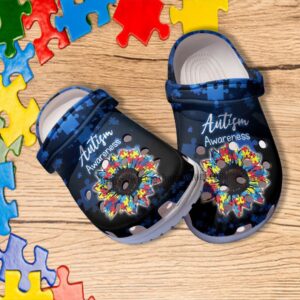 Merchidea Autism Blue Sunflower Puzzle Croc Shoes Gift For Aunt- Autism Awareness Blue Shoes Croc Clogs