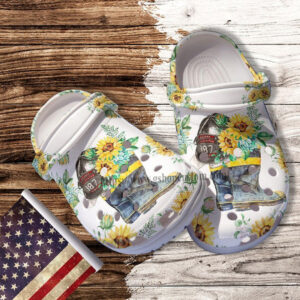 Merchidea Sunflower Boot Firefighter Wife Croc Shoes Gift Mother Day 2022- Girl Love Firefighter Shoes Croc Clogs Gift Grandma