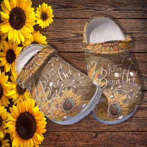 Merchidea Sunflower Just Breathe Croc Shoes Gift Grandma- Peaceful Just Breathe Shoes Croc Clogs