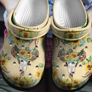 Merchidea Deer Skull Sunflowers Art Women Shoes Cute Shoes Rubber clog Shoes Comfy Footwear