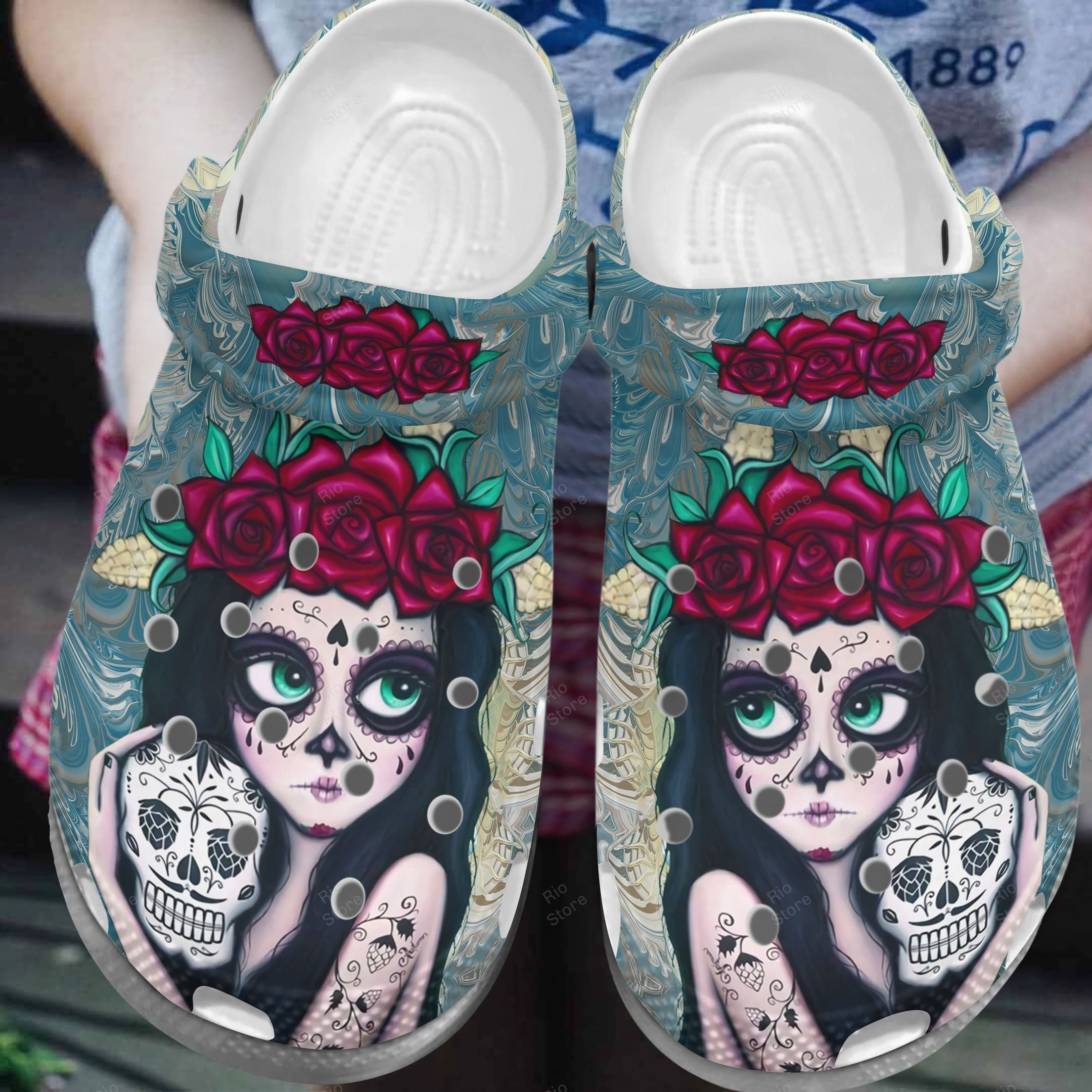 Merchidea Beautiful Girl Flower Sugar Skull Mexican Shoes Clog Gifts For Women Girl Daughter