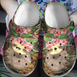 Merchidea Cute Flowers And Sloth Gift For Lover Rubber clog Shoes Comfy Footwear