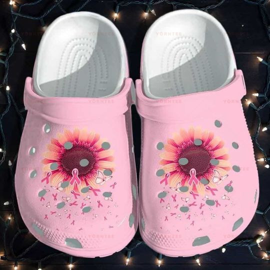 Merchidea Sunflower Breast Cancer Awareness Merchrubber clog Shoes Comfy Footwear