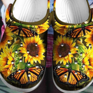 Merchidea Butterflies Hippie Sunflowers Gift Hippie Girl Rubber clog Shoes Comfy Footwear