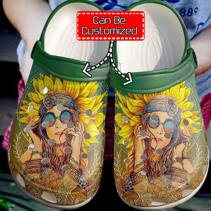 Merchidea Personalized Hippie Personalized Sunflower Art clog Shoes Hippie