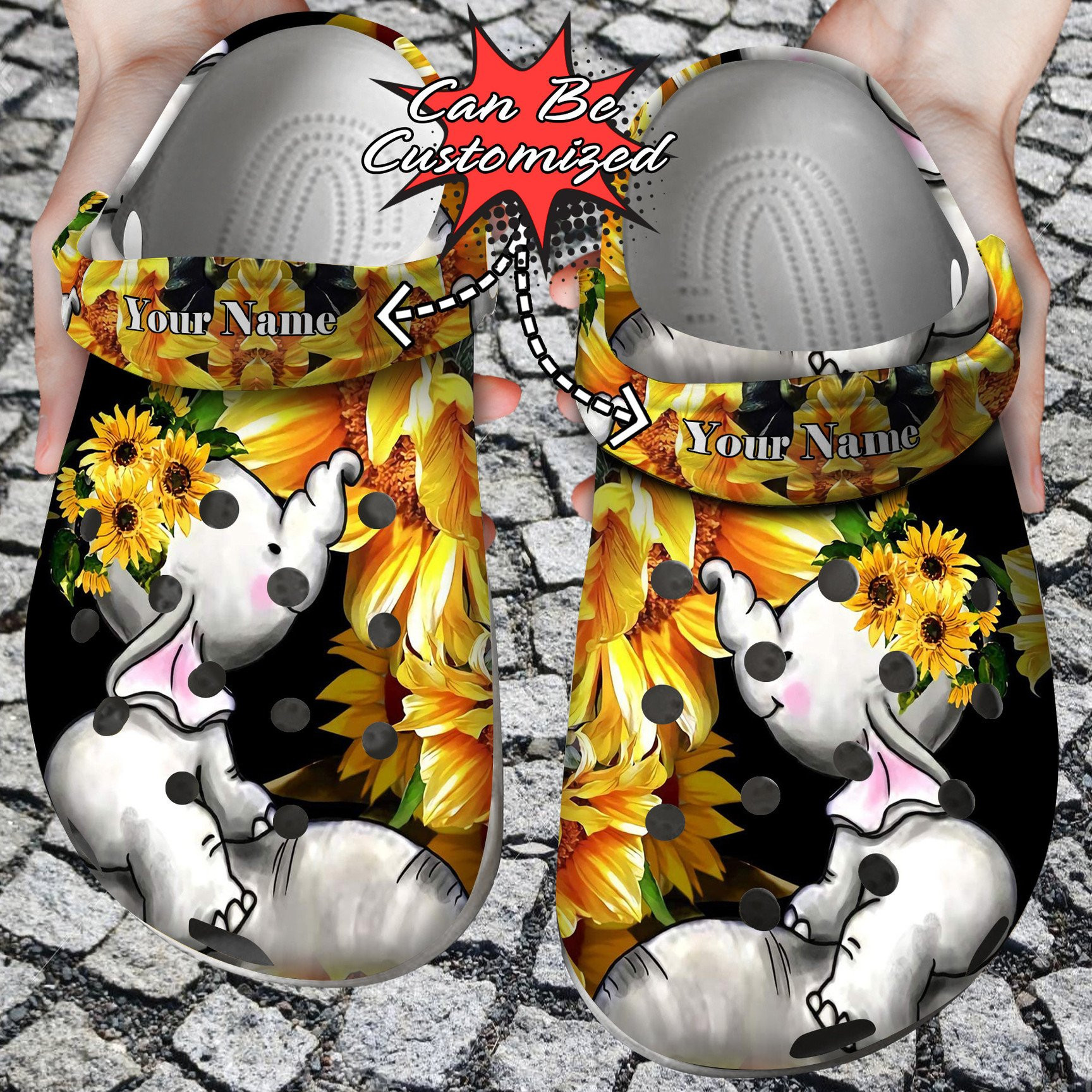 Merchidea Personalized Baby Elephant Sunflower clog Shoes Custom