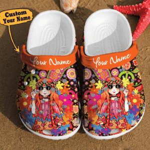 Merchidea Hippie – Personalized Hippie Girl Comfortable Women Classic Style Birthday Clog Shoes For Men And Women
