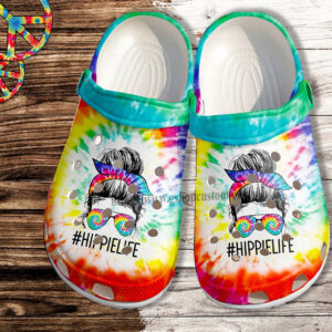 Merchidea Hippie Cool Girl Glasses Croc Shoes- Hippie Life Rainbow Shoes Croc Clogs Gift Birthday Girl